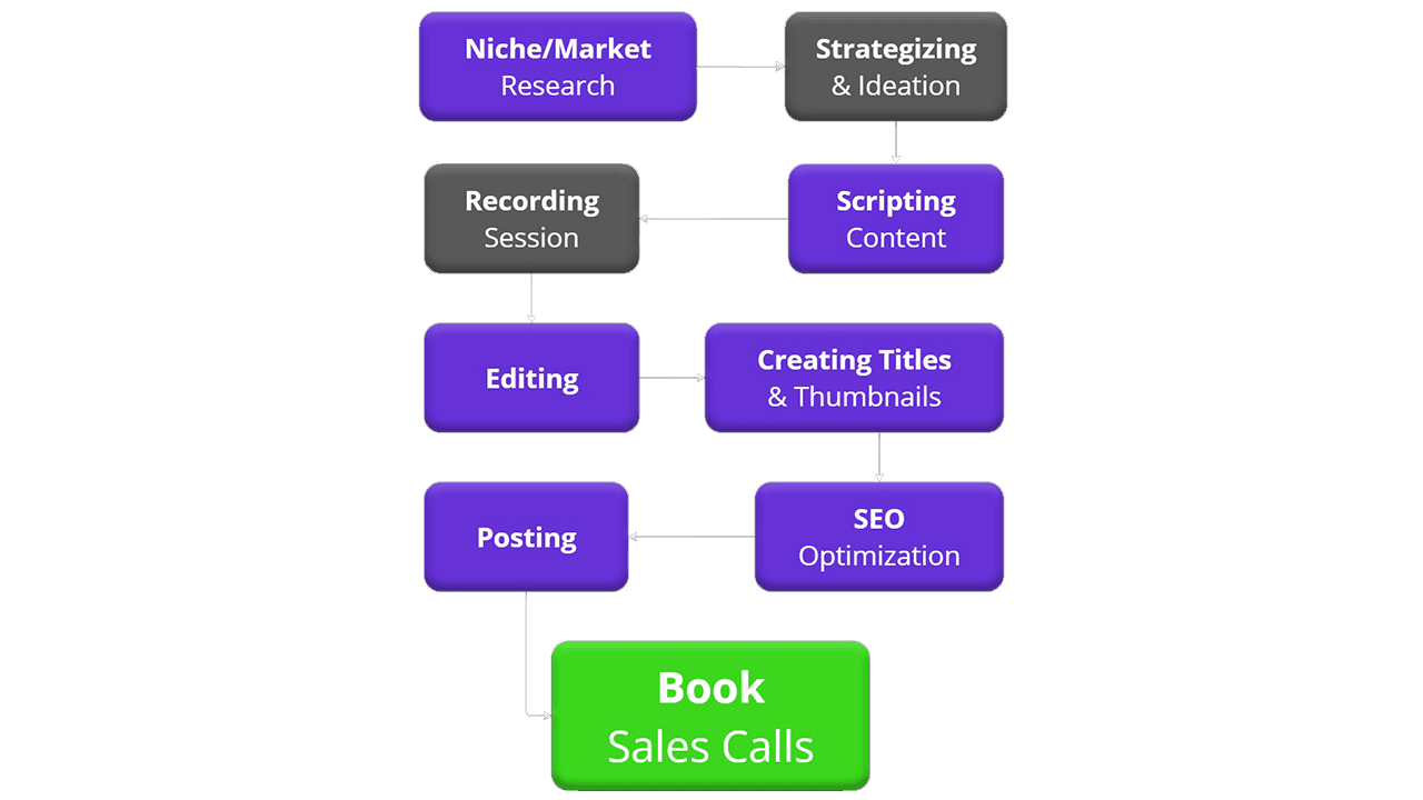 We take care of the entire back-end, all you have to do is press record and talk off the script/outline…